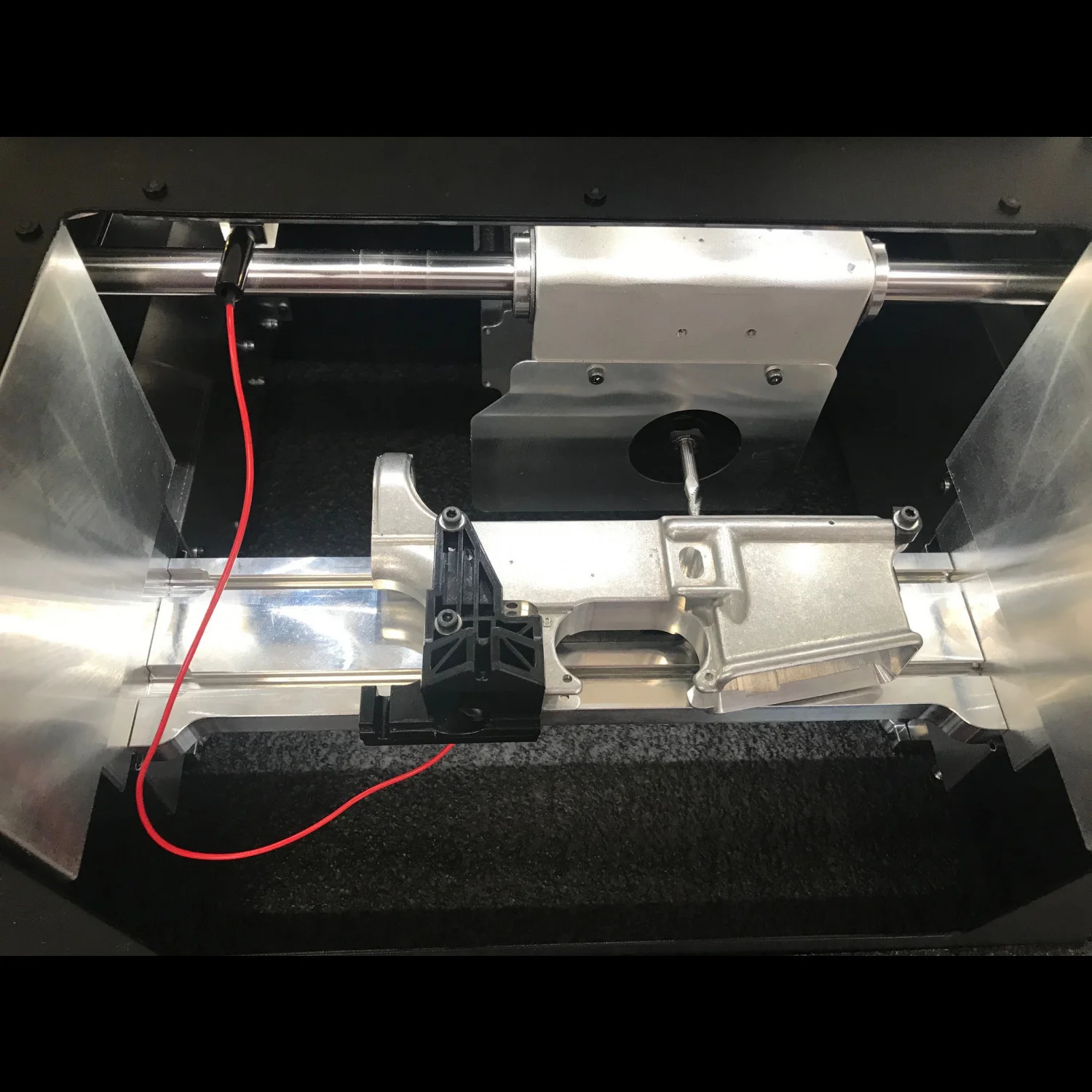 The Ghost Gunner 3-S is a complete redesign based on the successes of the GG2. It uses a milled, precision unibody frame for sharply improved squareness and rigidity. Optical limit switches and pre-loaded, self-aligning ball screws allow it to deliver advanced positional accuracy.